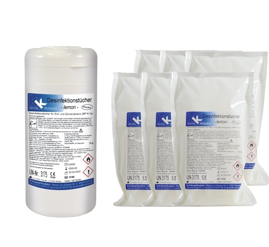 KK Desinfektionstücher 120 Tücher in Dose + 6x 120er Nachfiüllbeutel