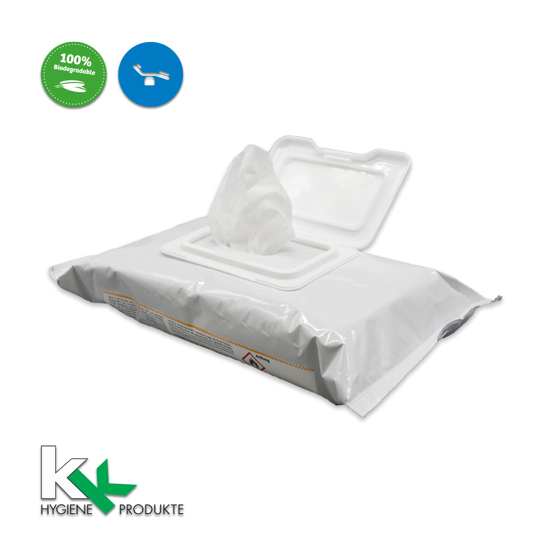 Die Tücher bestehen aus 100% biologisch-abbaubarem Tuchmaterial mit optimaler Wirkstoffabgabe.