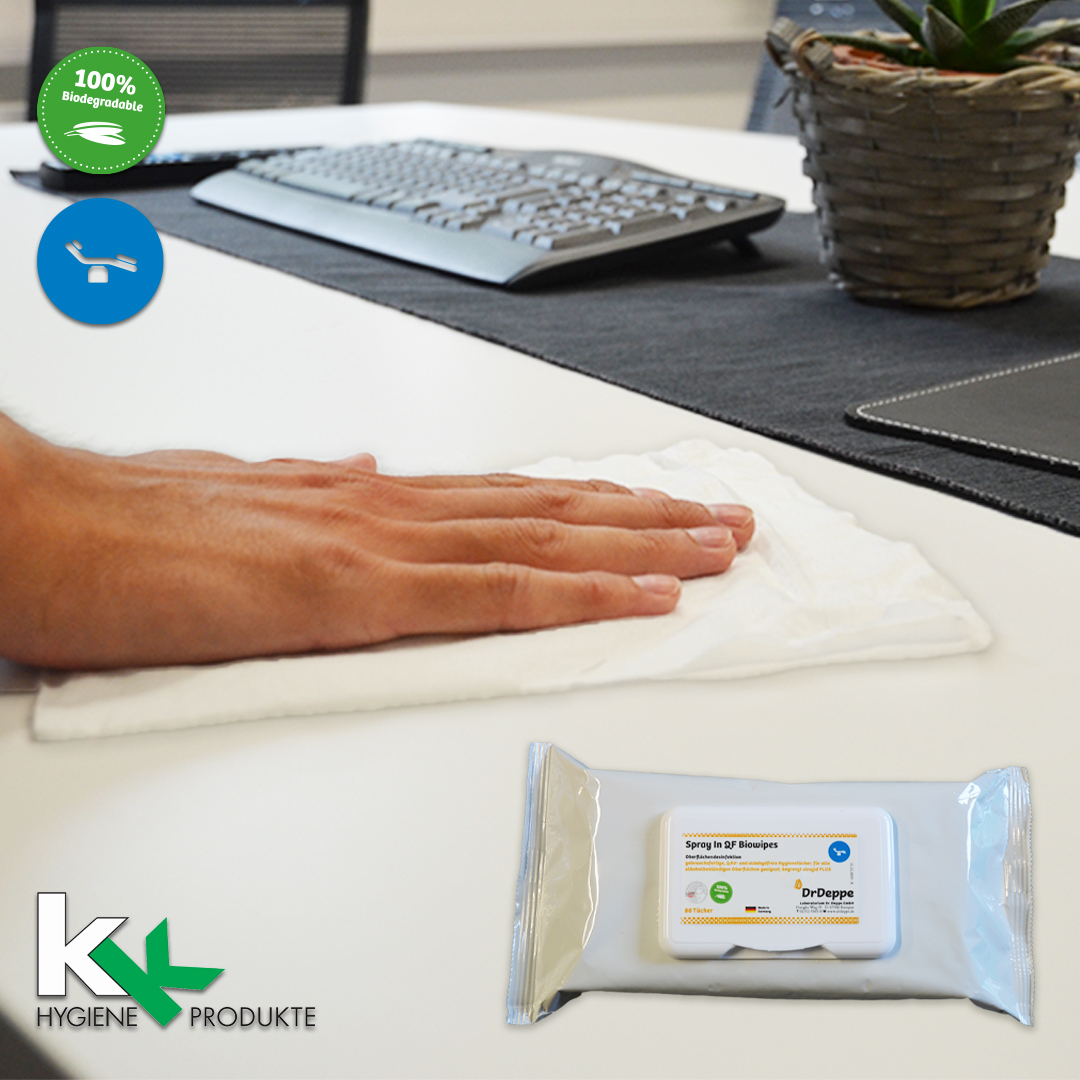 Die QF Biowipes sind gebrauchsfertige, QAV- und aldehydfreie Hygienetücher mit umfassendem Wirkungsspektrum zur Desinfektion aller Oberflächen und Gegenstände im Hygienebereich, in der Industrie und im Lebensmittelbereich.