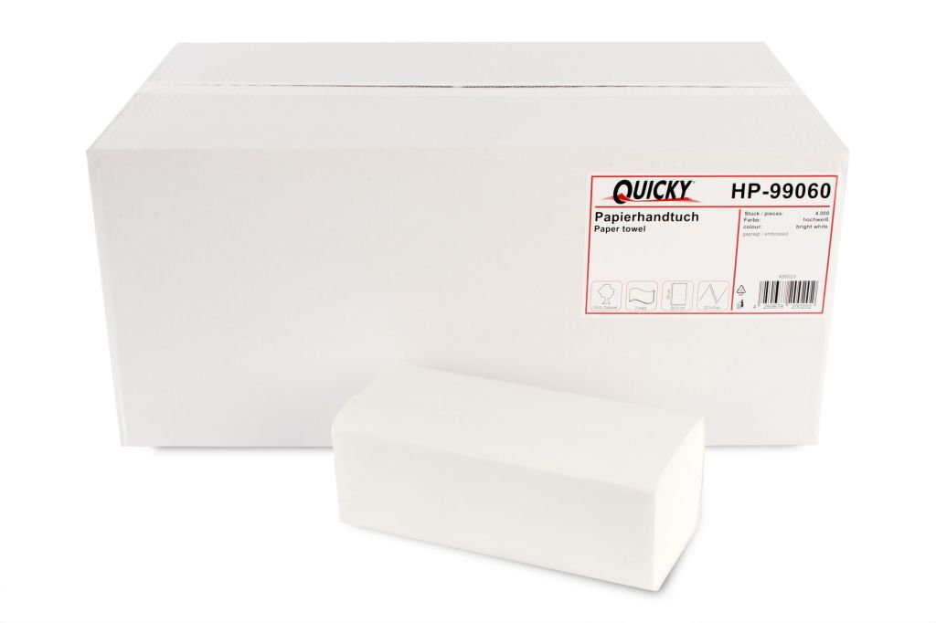 2-lagiges Papierhandtuch von Quicky ✔ Mit hoher Saugfähigkeit ✔ Aus Zellstoffpapier ✔ Sparsam im Verbrauch ✔ Günstig kaufen im Onlineshop von KK Hygiene ✔