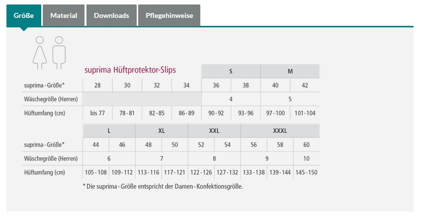 • Einheitsgröße (passend für alle Suprima Hüftprotektor-Slips)