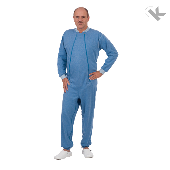 Dieser Funktionsoverall für Damen und Herren mit langem Arm und Bein ist besonders für die Pflege von Demenzkranken geeignet. Der Overall hat einen zweifachen Reißverschluss am Vorderteil und einen teilbaren Reißverschluss am Bein, dadurch kann Inkontinenzmaterial schnell und einfach ohne vollständiges Entkleiden des Patienten ausgetauscht werden. Das spart Pflegezeit! Sicherungen an Vorderteil- und Beinreißverschlüssen verhindert das selbständige Ausziehen des Patienten. Waschbar bei 60° und Trocknergeeignet!