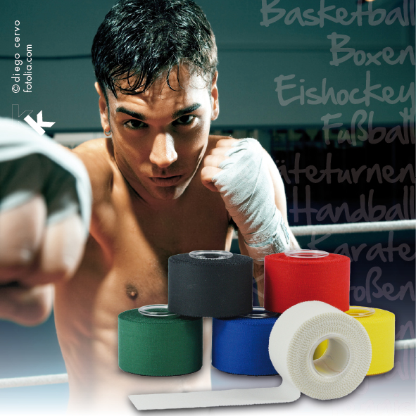 Sport-Tape aus hochwertigem, unelastischen Baumwollgewebe, das mit einem gut haftenden Zinkoxydkleber einseitig beschichtet ist. Es zeichnet sich durch seine Hautfreundlichkeit und aufgrund seiner Randbezackung, durch gute Handreißbarkeit in Längs- und Querrichtung aus.