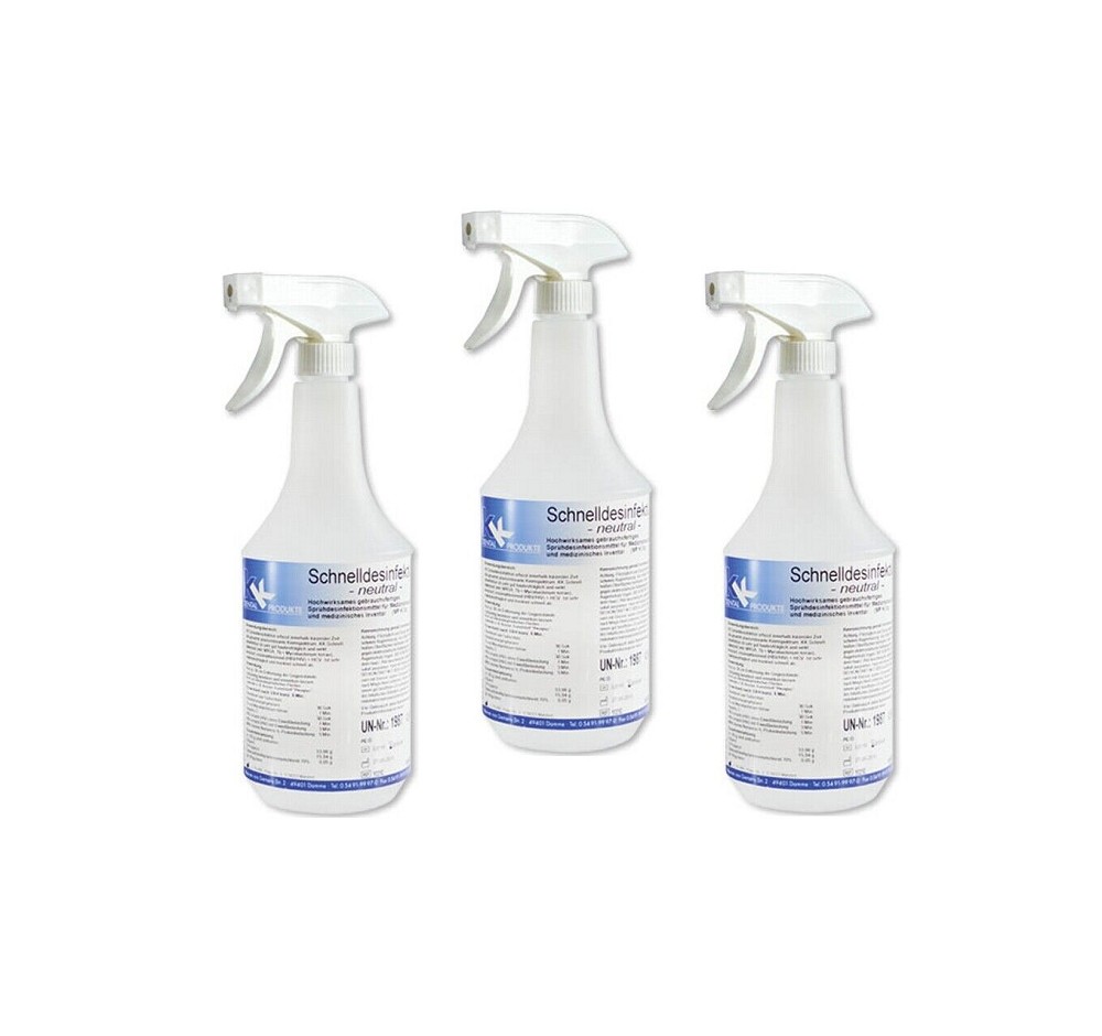KK Schnelldesinfektion in praktischer Sprühflasche | 3 x 1 Liter | 3 Duftsorten
